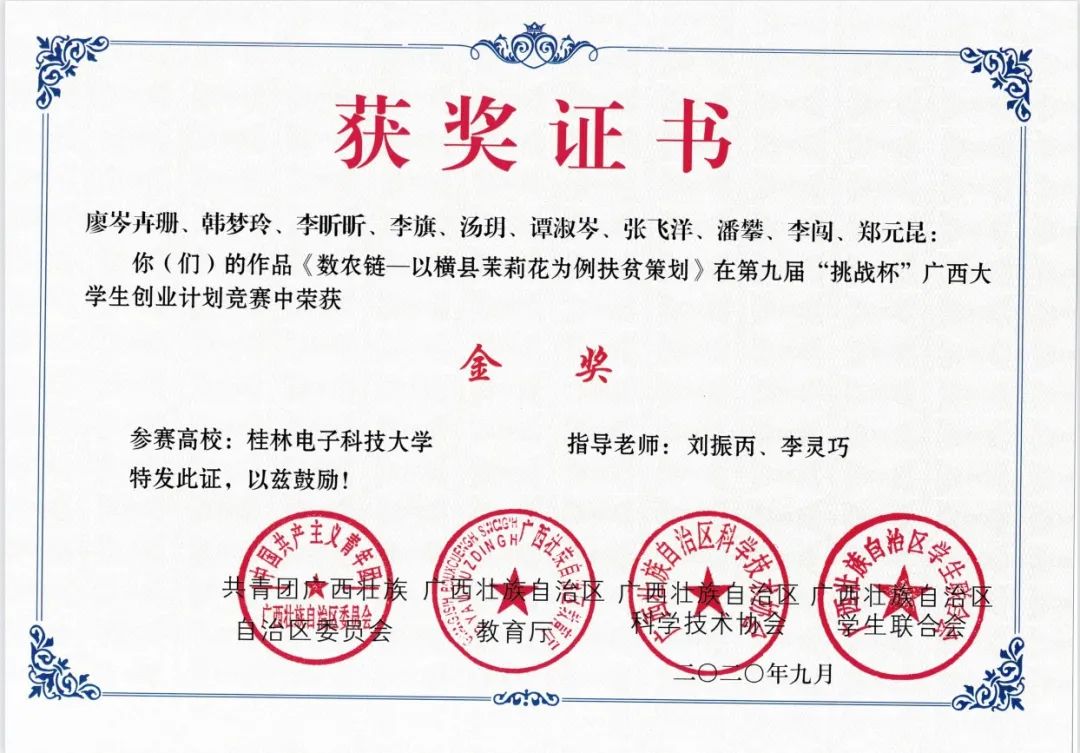 “挑战杯”广西大学生创业计划竞赛金奖