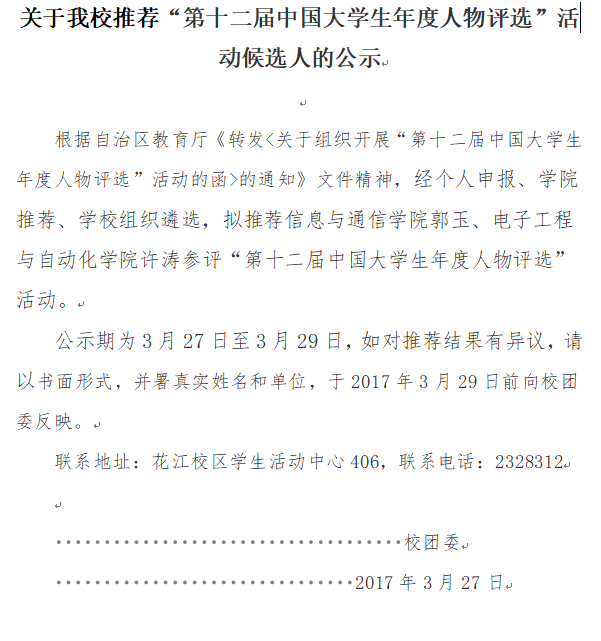 中国大学生年度人物提名奖