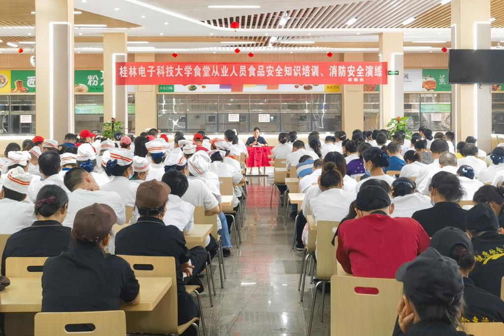 11月11日上午,后勤处邀请了校医院及保卫处专业人员在花江校区仲园餐厅为350余名食堂从业人员开展了食品安全知识培训及消防安全演练。