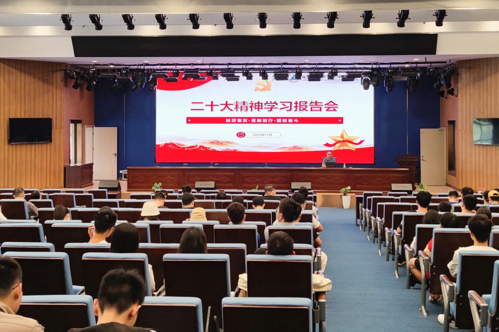 11月11日下午,桂电南宁研究院在研究院综合楼301报告厅举行党的二十大精神学习报告会暨第二批研究生入驻见面会。第二批入驻桂电南宁研究院的全体研究生参加,报告会由研究院党委书记刘权辉主讲。