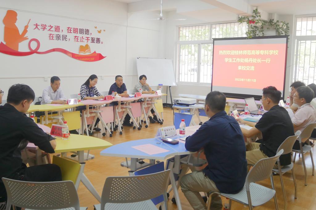 近日,桂林师范高等专科学校学生工作处处长杨丹一行到我校就学生工作进行调研交流。我校学工处副处长刘铁园、学工处各相关科室负责人、社区辅导员参加了座谈会。