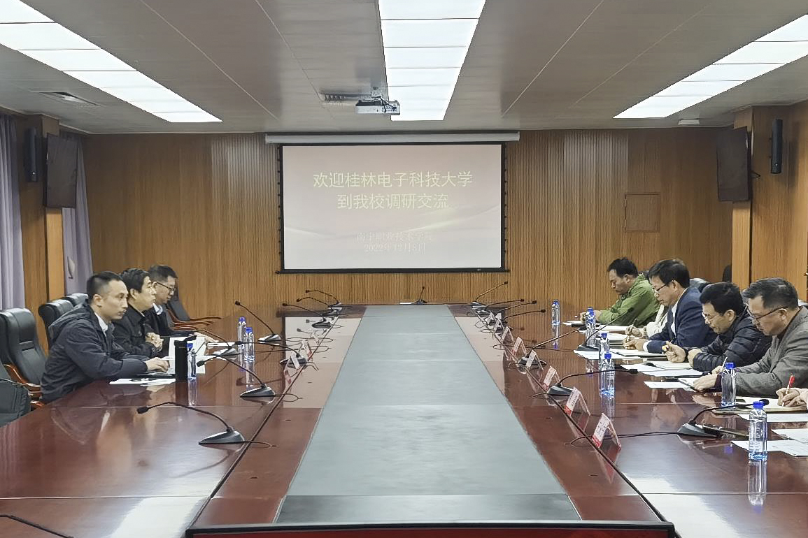 12月8日下午,副校长张文涛率发展规划处、桂电南宁研究院负责人到南宁职业技术学院调研交流。南宁职业技术学院校长周旺,副校长李东升会见张文涛一行,并进行了座谈。