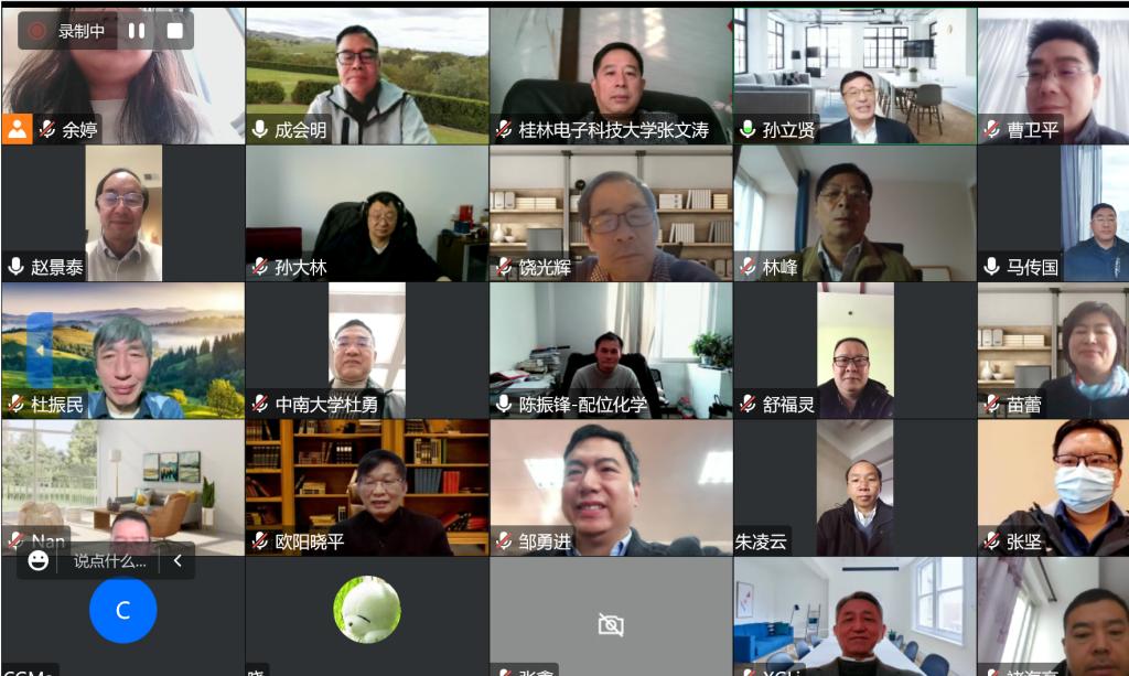 12月11日,广西电子信息材料构效关系重点实验室第三届学术委员会第三次会议在线上顺利召开。清华大学成会明院士、清华大学南策文院士、湘潭大学欧阳晓平院士、北京大学李星国教授、复旦大学孙大林教授、中南大学杜勇教授、北京科技大学杜振民教授,以及我校副校长张文涛教授,以及来自广西师范大学、中国有色桂林矿产地质研究院有限公司、桂林电器科学研究院有限公司等单位的实验室学术委员会委员、重点实验室和材料学院的领导及实验室固定研究人员代表。大家齐聚一堂共商重点实验室的建设与发展规划大计。