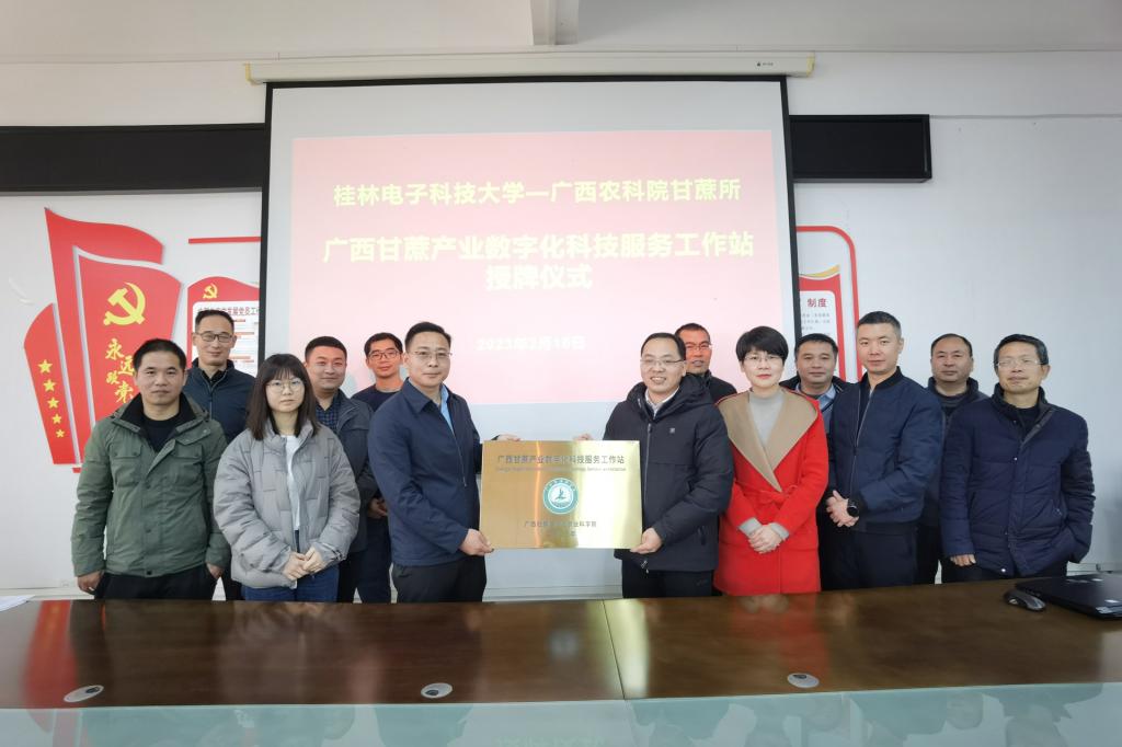 2月16日下午,我校与广西农科院甘蔗所在花江校区6教504会议室举行广西甘蔗产业数字化科技服务工作站授牌仪式。广西农业科学院甘蔗所首席科学家王泽平博士和黄海荣副研究员等甘蔗产业服务数字化团队一行4人,科研院副院长李灵巧、数学与计算科学学院领导和团队老师10余人参加仪式。