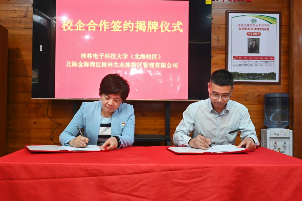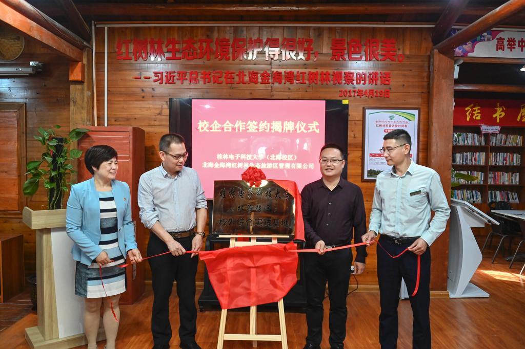 随后,北海校区党委书记秦竟芝作为北海校区代表,与北海金海湾红树林生态旅游区管理有限公司签订了合作协议,并举行揭牌仪式。