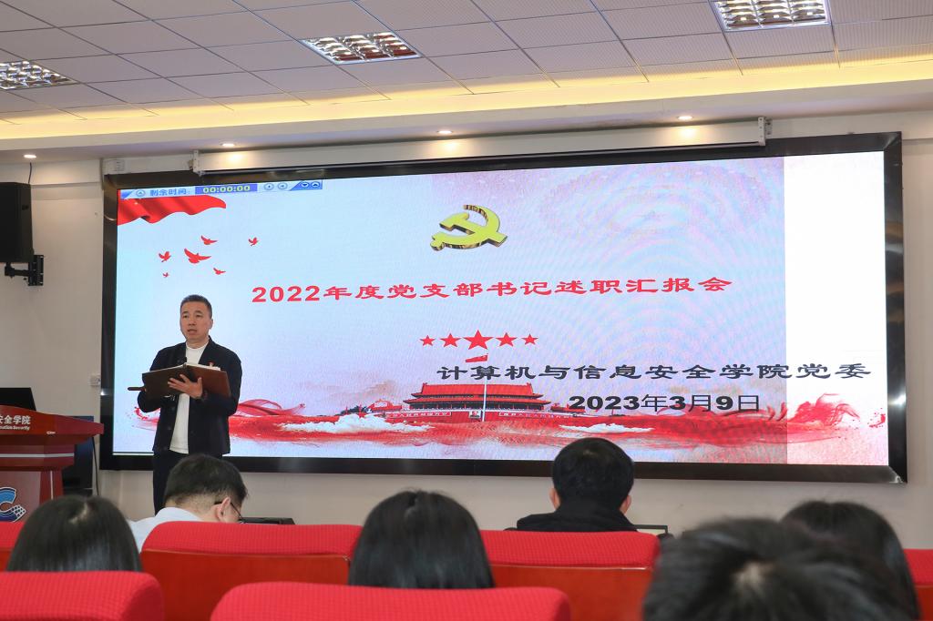 3月9日上午,计算机与信息安全学院党委在花江校区5506会议室召开2022年度党支部书记述职汇报会,活动由学院党委书记文辉主持。