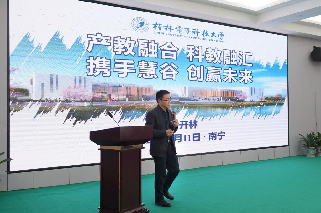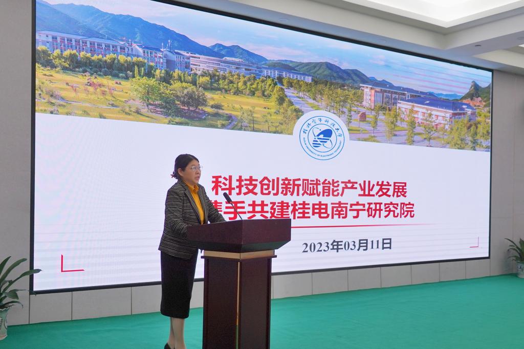 根据会议议程安排,徐华蕊作了《桂电精神成就非凡,牢记使命开创未来》的主题报告,主要从办学规模、办学条件、办学质量等方面详细介绍了学校十年来取得的非凡成就,表示将从实施OBE理念落实立德树人、对标"四个面向"开展科学研究、坚持开放共享服务社会发展等方面开创桂电高质量发展之路;聂慧作了《携手画好同心圆,聚力打造共同体》的报告,介绍了学校近年来校友工作情况及今后校友工作重点;周娅作了《科技创新赋能产业发展,携手共建桂电南宁研究院》的报告,重点介绍了学校科研、成果转化和桂电南宁研究院的发展情况;潘开林作了《携手桂电花江慧谷,共创人才培养辉煌》的报告,重点介绍了学校花江慧谷建设情况;南宁市委常委、副市长范晓敏就南宁市产业发展和投资环境作了介绍;桂林市灵川县县长陈文彬就灵川的发展优势、桂林智谷、灵川的政策等方面作了介绍。