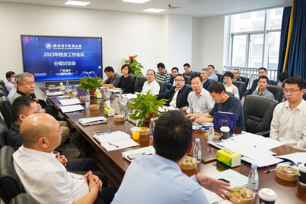 11日下午,各地校友会代表、学校领导、学校职能部门、学院相关人员分组研讨,围绕加快南宁研究院建设、统筹推进人才培养、成果转化等融入南宁高质量发展、建设壮美广西献言献策,探讨了学校赋能100家校友企业、每年聘请100位校友生涯导师、每年组织100场校友讲座、建设100个校友企业实习基地等“四百工程”校友工作方案。