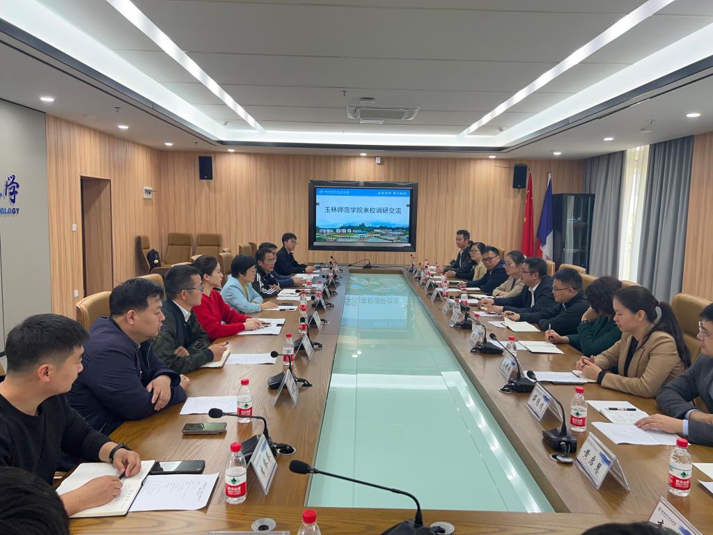 聂慧对韦广雄一行来校表示热烈欢迎,并介绍了我校的基本概况和学生工作情况,希望玉林师范学院领导一行对我校学生工作发展多提意见,加强双方交流合作,促进学校高质量发展。
