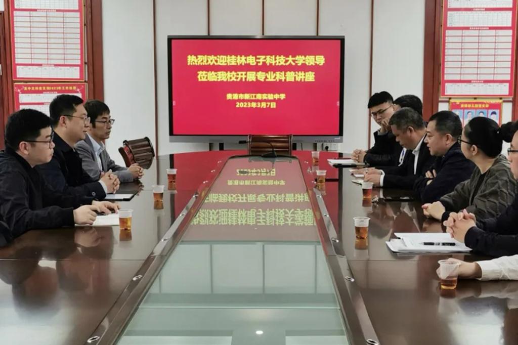 近日,艺术与设计学院前往贵港市新江南实验中学开展“新高考背景下职业生涯规划及专业科普”探索交流活动。我校招生办主任徐志超,艺术与设计学院党委副书记管鹏、学院教师魏加兴一行3人,新江南实验中学校长冉永华等领导、300余名中学师生参加交流活动。