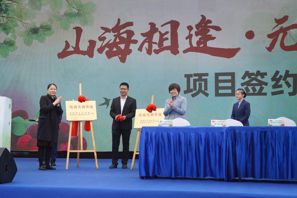 活动中,秦竟芝代表校区与西场镇党委副书记、镇长罗林签订校政合作协议,并共同为双方合作的电商实训基地揭牌。她表示,校区此次与西场镇人民政府合作共建电商实训基地,希望为西场镇的乡镇干部、从事农业相关人员开展电子商务培训,助力乡村振兴;同时为学生提供更多优质的社会资源和实践平台。希望今后双方能达成全方位的合作,早日实现产学研融合发展,携手实现共赢。