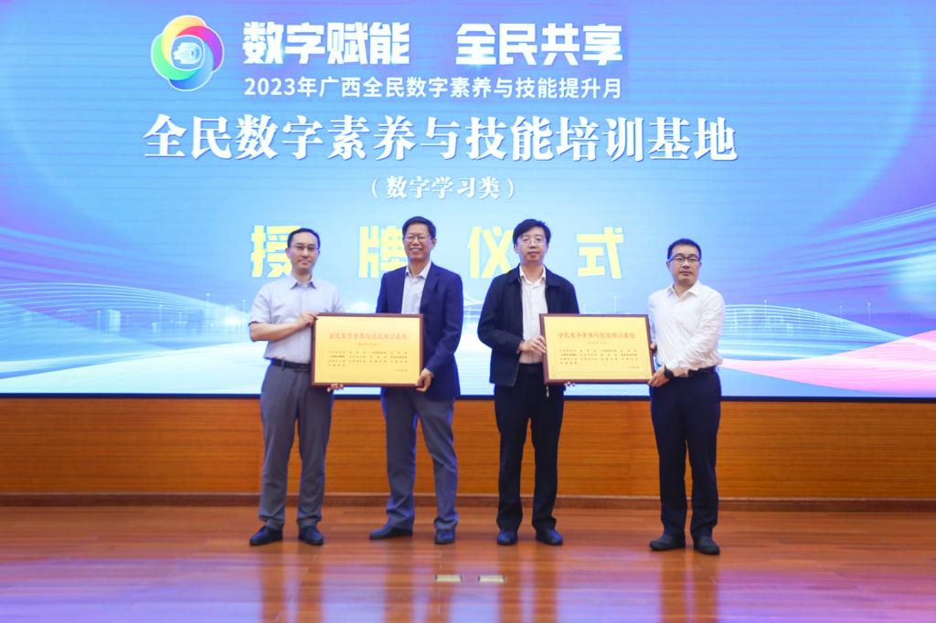 据悉,2023年3月国家网信办等13部委联合评选认定78家全民数字素养与技能培训基地,广西仅2家单位获批。启动仪式上,桂林电子科技大学全民数字素养与技能培训基地正式被授牌。