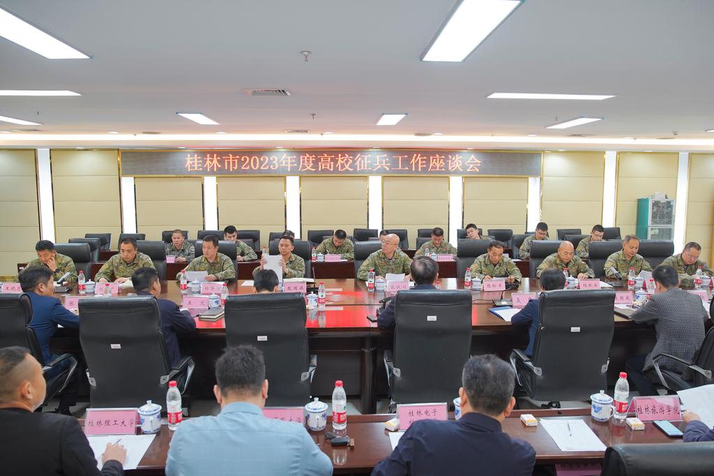 张松军传达了全国征兵工作会议精神,通报了近两年桂林市高校征兵工作情况。各单位介绍了近两年征兵工作情况及存在的困难,并提出意见建议,同时就高校征兵关系和任务进行了交流。
