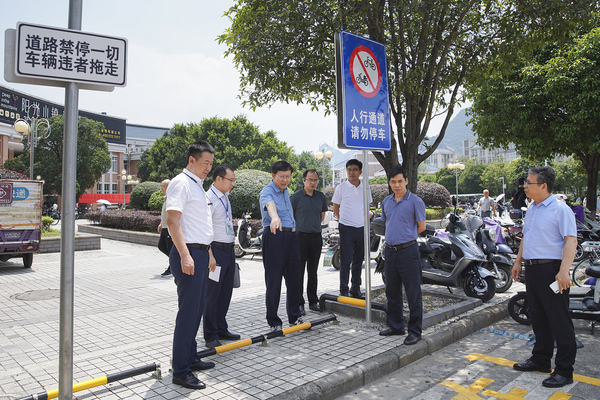 会后,与会人员分组深入校园各处,对校园交通实际情况进行了调研。