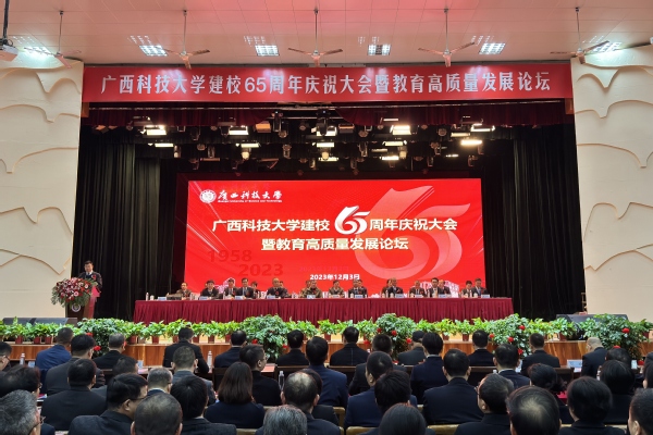 12月3日,校长徐华蕊参加广西科技大学建校65周年庆祝大会暨教育高质量发展论坛并作专题报告。广西科技大学中层干部和教授代表参加了专题报告会,报告会由广西科技大学校长刘宝臣主持。