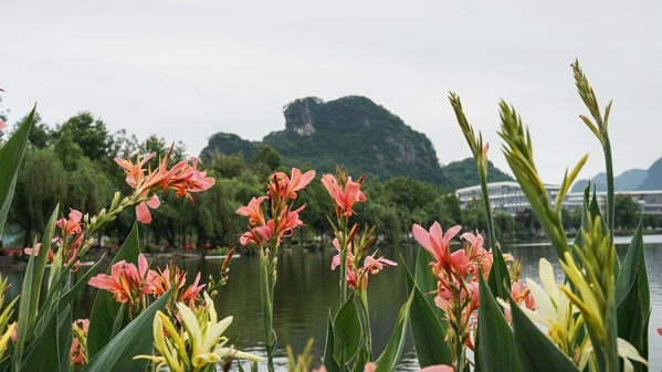相思湖边的美人蕉盛开