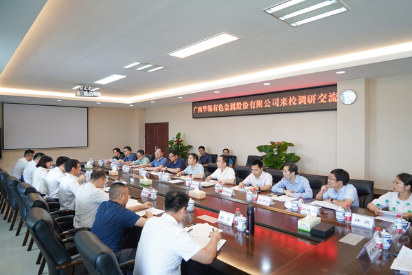 5月24日,广西华锡有色金属股份有限公司党委书记、董事长蔡勇一行来校就科研项目合作、平台建设、人才交流等主题进行交流,校长张文涛热情接待蔡勇一行。双方在花江校区办公大楼515会议室进行座谈。
