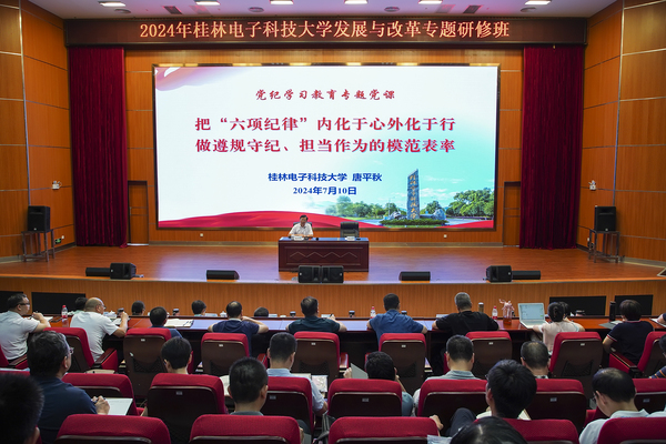 根据党纪学习教育要求,结合我校干部培训安排,7月10日,校党委书记唐平秋在花江校区图书馆三楼报告厅以“把‘六项纪律’内化于心外化于行 做遵规守纪、担当作为的模范表率”为主题,为我校2024年发展与改革研修班全体参训学员讲授党纪学习教育专题党课。