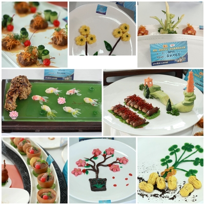 其中,我校厨师谭建的菜品 “龙脊椒鲜虾牛肉卷”“金丝红肠虾卷”获红案热菜系列特金奖,李玉红的菜品“养生桂花绿豆糕”“象形金鱼饺”获面点系列特金奖;廖贱贵的菜品“福寿果酿”“煎五福肉饼”获红案热菜系列金奖,苏玉红的菜品“桃花酥”“象形花生”获面点金奖。此外,李玉红的菜品“养生桂花绿豆糕”赢得了评委的高度评价,荣获大赛特设的推广奖。