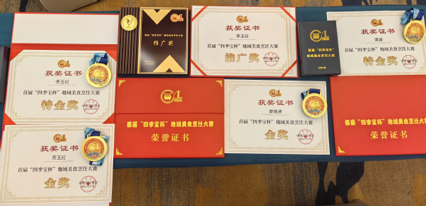 近日,由中国烹饪协会主办的首届“四季宝杯”地域美食烹饪大赛在广州举行,比赛汇聚了广州酒家、韶关市碧桂园凤凰酒店有限公司、中国铁路昆明局集团有限公司、南充市北湖宾馆等全国五十六家知名企事业单位,共一百余名厨师同台竞技,我校厨师团队在比赛中表现优异,荣获多项大奖。