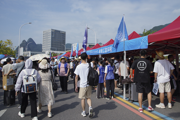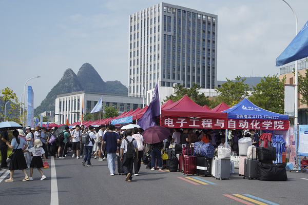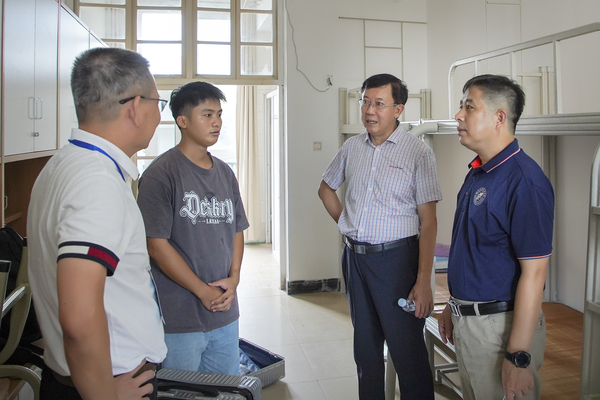 在新生报到点和学生宿舍区,校领导与新生和家长亲切交流,详细询问他们的情况。“你是哪里人?”“家人有陪同过来吗?”“报到手续都办理好了吗?”“有遇到什么困难吗?”“住宿环境怎么样?”“学校的环境和条件还满意吗?”并代表学校欢迎学生和家长的到来,感谢他们信任桂电、选择桂电,勉励新生站在新的起点和平台上,面临新的竞争,要尽快适应大学新生活,志存高远,做好规划,找准目标,珍惜时间,好好学习,在校度过精彩的、有意义的、有成就的大学生活,努力成长为可堪大用、能担重任的栋梁之材;同时也请家长们放心,学校将会继续为学生的成长和发展提供全面的支持、优质的资源以及良好的环境。