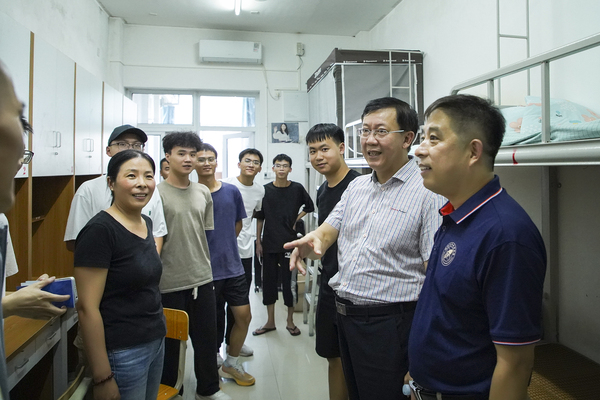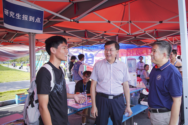 报到首日,校党委书记唐平秋、校长张文涛、校党委副书记聂慧、副校长陈松青一行深入迎新现场检查指导工作,了解新生报到注册情况,看望2024级新生及家长,慰问迎新工作人员与志愿者。