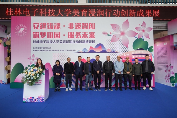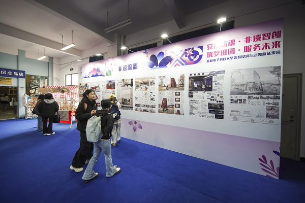 本次美育浸润行动创新成果展时间为11月26日至29日中午,作品涵盖了产品设计、动画、视觉传达设计、环境设计、服装与服饰设计、数字媒体技术、表演七个专业方向,包括红色文化、服务社会、乡村振兴、非遗民韵、校园文创等主题展区,具有鲜明的时代特征和艺术特色,充分展现了桂电学子深植家国情怀、勇担文化使命、不懈追求创新的精神风貌。