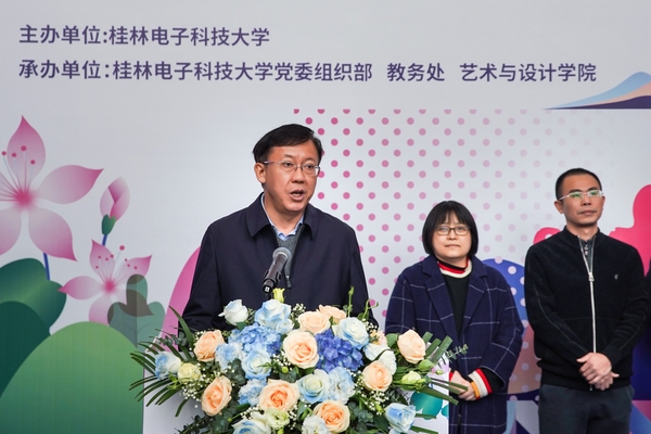 开幕式上,唐平秋指出,学校历来高度重视美育工作,积极探索“人文为体,科技为用,艺术为法”的“文理工艺”交叉融合的新文科建设模式。本次展览集中展示了学校美育浸润行动在文化传承、创新发展、社会服务以及校园文创等领域取得的丰硕成果,旨在以美育浸润学生、浸润教师、浸润校园,将“党建+美育”融入教育教学活动各环节,潜移默化地提升师生审美素养,激发师生的创新创造活力。希望全校上下以本次成果展为契机,持续深化美育在学习和生活中的重要作用,不断将电子信息特色融入美育浸润计划,丰富美育内涵、创新美育形式、拓展美育路径,共同营造时时、处处、人人的美育氛围。