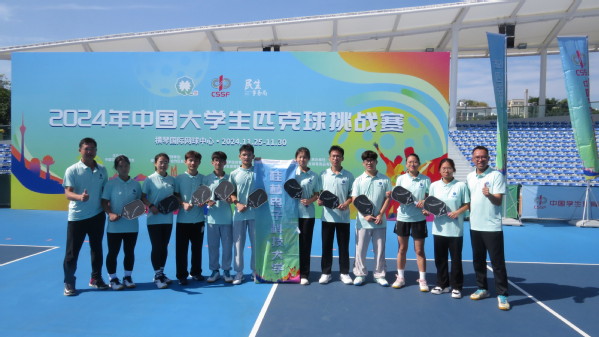 11月24日—30日,2024年中国大学生匹克球挑战赛在珠海横琴国际网球中心举行,我校参赛团队荣获佳绩,其中张丽娜、罗臻娣、陈玉欣、吴星叶、温婧文获得甲组女子团体第三名,黄超滨、彭文伟以及梁聪明、李勇威并列获得男子双打第三名,李勇威、张丽娜获得混合双打第五名,田礼旺获得男子单打第五名,罗臻娣获得女子单打第五名。