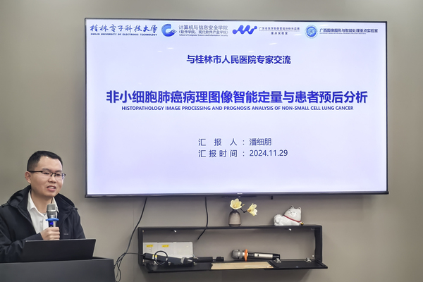 11月29日,为落实我校与桂林市人民医院共建医联体医院相关协议要求,计算机与信息安全学院师生前往桂林市人民医院开展医工交叉研究交流。桂林市人民医院相关科室医生代表、学院相关负责人、教师代表及研究生代表参加交流。