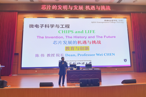 1月2日,西交利物浦大学芯片学院院长陈伟应邀到校作题为“芯片的发明与发展机遇与挑战”的主题报告。副校长刘建明主持报告会,科研院相关人员和机电工程学院、信息与通信学院、材料科学与工程学院、光电工程学院的师生代表300余人参加报告会。