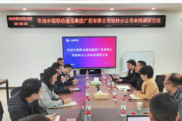 3月12日,中国移动桂林分公司副总经理冯志坚一行来我校人工智能学院交流,科研院,学院相关负责人、科研团队负责人参加座谈。
