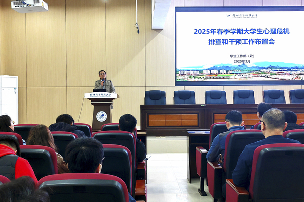 3月12日,学生工作部(处)在花江校区红亮学生活动中心110宣讲室召开2025年春季学期心理健康教育工作布置会。学生工作部(处)主要负责人、研究生工作部相关负责人、二级学院党委副书记、学院心理工作站负责人、24级本科及研究生新生辅导员、心理健康教育中心专职教师参会。