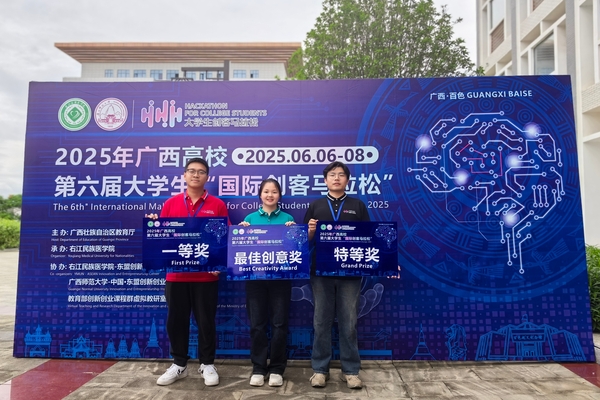 6月6日至8日,2025年全区高校第六届大学生“国际创客马拉松”活动举行。经过激烈角逐,我校信息与通信学院本科生于越康、计算机与信息安全学院留学生研究生MAI TU DUY(中文名:梅岫维)在比赛中脱颖而出,荣获特等奖1项、一等奖1项、最佳创意奖1项。