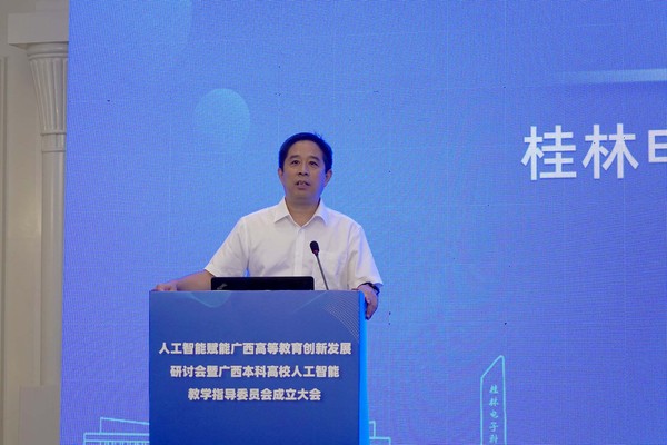7月1日,由自治区教育厅主办,我校承办的人工智能赋能广西高等教育创新发展研讨会暨广西本科高校人工智能教学指导委员会成立大会在桂林召开。自治区教育厅副厅长张旭凤,我校校长张文涛、副校长周娅、刘建明,广西本科高校人工智能教学指导委员会名誉主任委员、华东师范大学原副校长周傲英教授,中山大学人工智能学院副院长印鉴教授,以及广西各高校分管教学副校长、教务处处长、人工智能相关专业负责人,广西本科高校人工智能教学指导委员会全体委员,人工智能相关企业的领军代表参加大会。