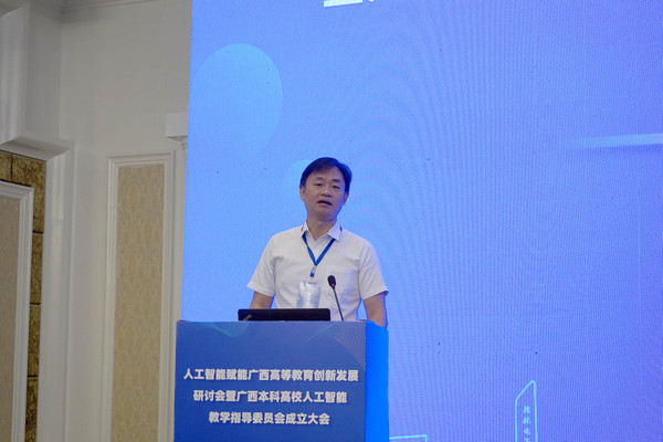 新任广西本科高校人工智能教学指导委员会主任、我校副校长刘建明在会上讲话