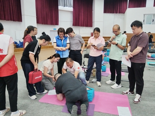 本次培训由桂林市红十字会专业师资团队授课,采用“理论+实操”双轨模式,系统传授自动体外除颤器(AED)操作规范、心肺复苏(CPR)黄金四分钟处置流程。