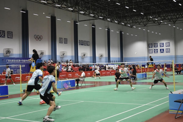 7月17日,由自治区教育厅、自治区体育局、团区委主办,我校承办,广西学校体育卫生艺术学会协办的广西壮族自治区第十四届学生运动会羽毛球(中学组、区直中职组)比赛在我校花江校区球类馆开幕。