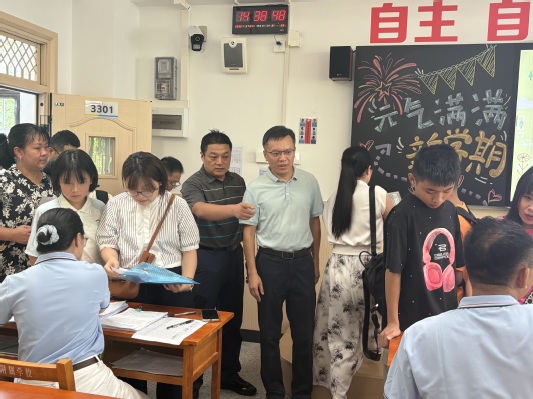 8月24日,副校长陈松青到桂电中学、桂电附属学校、幼儿园检查指导新学期开学工作,保卫处、基教办、桂电中学、桂电附属学校等相关部门负责人随同检查。