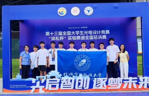 8月22日,第十三届全国大学生光电设计竞赛决赛在浙江大学落下帷幕。我校光电工程学院的 4 支代表队:耄耋绿波队(队员:李明洪、侯保冀、韦顺一;指导老师:陈辉金、甘永莹)、光电未来队(队员:袁永煜、郭广城、易茂宝;指导老师:梁秋裕、童宣科)、索博车队(队员:张圳豪、李伟豪、黄之权 ;指导老师:韦柳夏、童宣科)、目见得胜队(队员:刘沐源、林健忠、黎德圣;指导老师:甘永莹、梁秋裕)表现突出,首次闯入实物赛道总决赛,并全部斩获全国二等奖,创下学校在该项赛事中的最佳战绩。