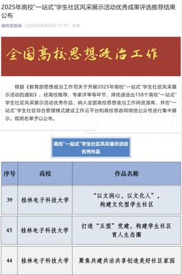 8月29日,由教育部思想政治工作司主办、全国高校思想政治工作网承办的2025年高校“一站式”学生社区风采展示活动优秀成果名单正式公布。我校报送的3篇工作案例《“以文润心,以文化人”,构建文化型学生社区》《打造“五型”党建,构建学生社区育人生态圈》《聚焦共建共治共享,创造美好社区家园》成功入选全国高校“一站式”学生社区风采展示活动优秀成果名单。
