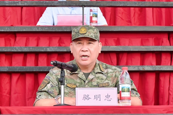 骆明忠在讲话中指出,军训不是走过场,而是上战场。同学们不仅是中华民族伟大复兴的见证者,更是推动者和捍卫者。在训练场上挥洒的汗水,既是对红色基因的传承,更是对先辈意志的践行。希望同学们发扬不怕苦、不怕累的战斗精神,在烈日下挺直腰板,在汗水中锤炼意志,在坚持中铸就荣光,以“请党放心,强军有我”的青春誓言,以昂扬的精神圆满完成这一次的军训任务,以优异的表现为大学生生活拉开精彩的序幕。希望教官们要认真负责、科学组训、严格要求、为人师表、全神贯注、全力以赴,树立人民军队的好样子,不辜负同学们的期待。