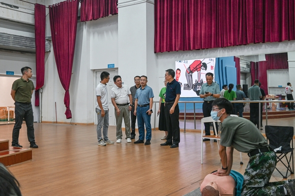 慰问结束后,徐华蕊一行来到战场医疗救护教学区,现场观摩了心肺复苏课目演示。