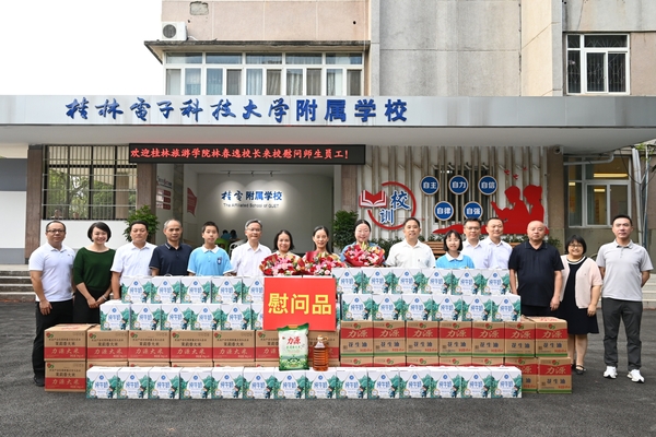 期间,林春逸代表桂林旅游学院向桂电附属学校教师代表致以节日的问候并赠送慰问物资,实地考察桂电附属学校校园,详细了解学校的办学环境及教学设施等情况。