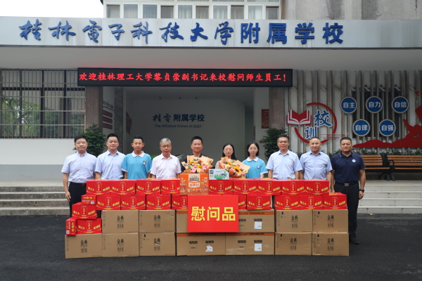 期间,黎贞崇代表桂林理工大学向桂电附属学校全体教师致以节日的祝贺,并赠送慰问物资,实地考察桂电附属学校校园,详细了解学校的办学环境及教学设施等情况。