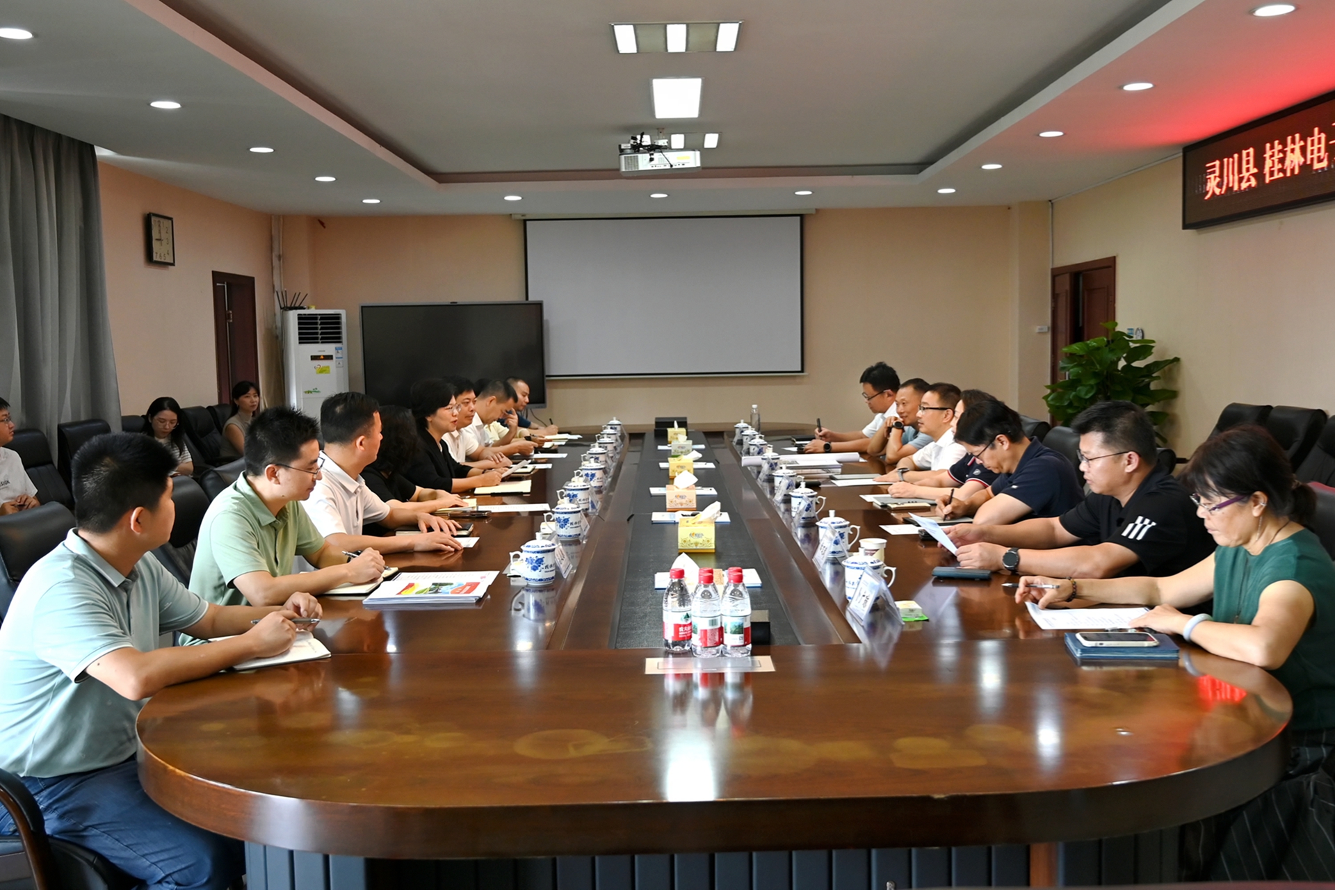 朱鹃屏详细介绍了灵川县花江智慧谷后续建设、花江全流域农文旅融合发展项目的推进情况以及人才引育等方面的合作需求,她指出,桂电跟灵川县发展密不可分,感谢桂电多年来对灵川县经济社会发展的大力支持与帮助,希望与学校进一步对接需求、细化合作,携手为桂林市乃至广西经济社会高质量发展作出更大贡献。