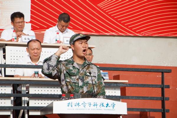 电子工程与自动化学院2025级本科生盛锦鹏上台领誓,全体新生进行入学宣誓。