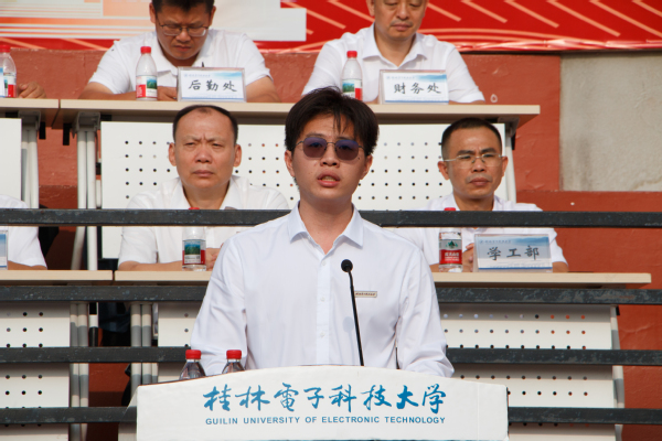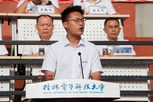 教师代表,信息与通信学院博士生导师,自治区优秀教师、八桂学者青年拔尖人才李晓欢教授分享了自己在桂电当学生、做老师的成长经历,勉励同学们要正德立心,养浩然之气,立报国之志;厚学求真,博观而约取,厚积而薄发;笃行致新,以青春之我,创青春之中国。