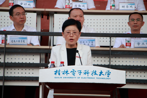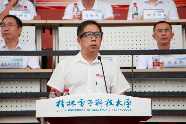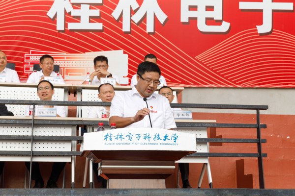 校长张文涛以“破圈向前,追光向远”为题作开学典礼讲话。他指出,大学的价值,体现在服务国家、服务社会、服务人民,这是桂电人的不懈追求。青年大学生肩负着将个人理想融入国家发展的时代重任,同学们要继承和发扬一代代桂电人“为党育人、为国育才”的初心使命,在桂电这片沃土上,大胆探索未知、突破边界,用心体验每一次奋斗的欢欣、每一次挫折的洗礼,把每一个为目标拼搏的坚定脚印、每一程为理想奔跑的炽热身影,汇聚成照亮自己、点亮时代的璀璨星河。