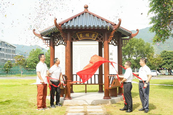 北京校友会会长傅强、广州校友会会长田野、浙江校友会秘书长马军妹分别发言,表达了对母校的深厚感情与持续关注,希望燕园成为集生态、育人、文化于一体的新的校园地标,承载故事,启迪未来,见证母校岁月流光。徐华蕊、张文涛、张波、傅强、田野、马军妹共同为“燕园”揭幕,徐华蕊为校友会颁发了纪念盘。
